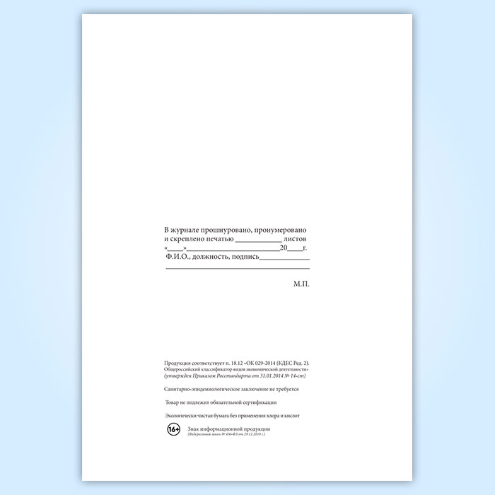 Вы получаете печатную продукцию прошнурованной и c местом для вашей печати в соответствии с действующими нормативными документами: