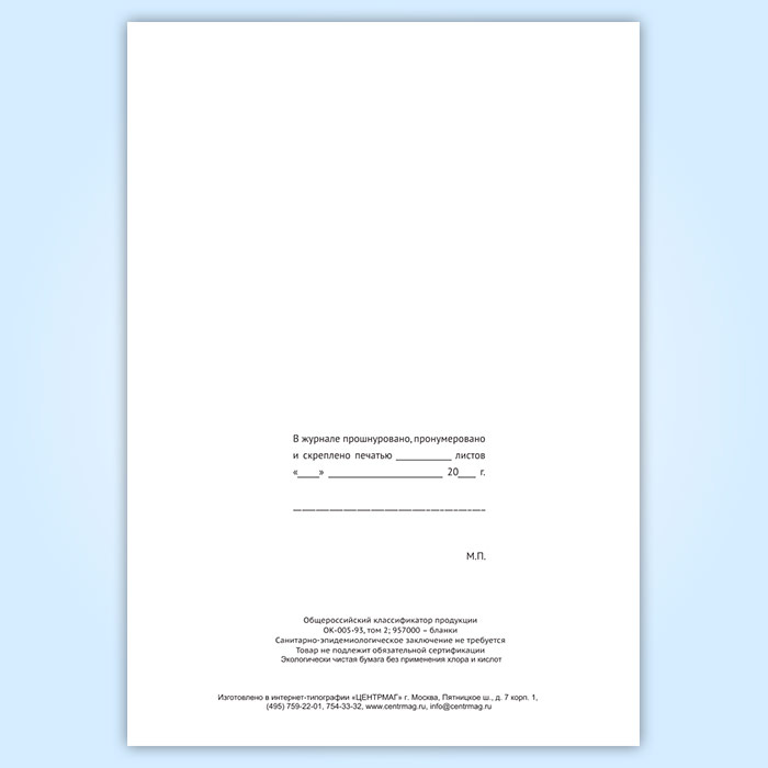 Вы получаете печатную продукцию прошнурованной и c местом для вашей печати в соответствии с действующими нормативными документами: