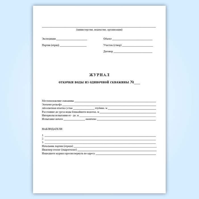 Журнал откачки воды из одиночной скважины (форма УГ-36) в Щёлково купить
