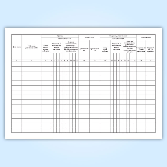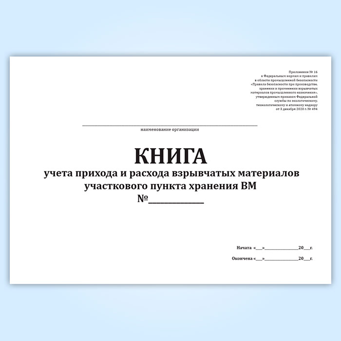 Книга учета прихода и расхода взрывчатых материалов участкового пункта хранения ВМ в Щёлково купить