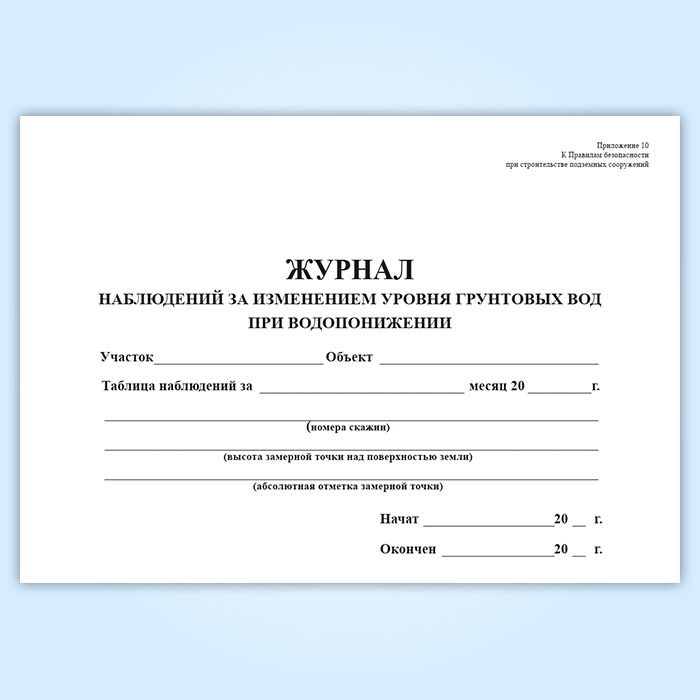 Журнал наблюдений за изменением уровня грунтовых вод при водопонижении в Щёлково купить