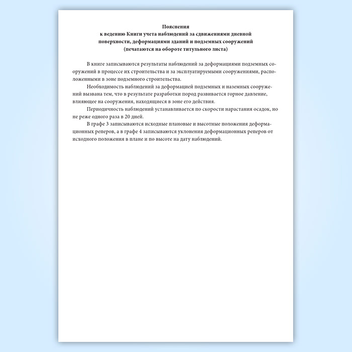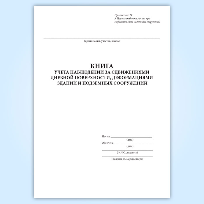 Книга учета наблюдений за сдвижениями дневной поверхности, деформациями зданий и подземных сооружений в Щёлково купить