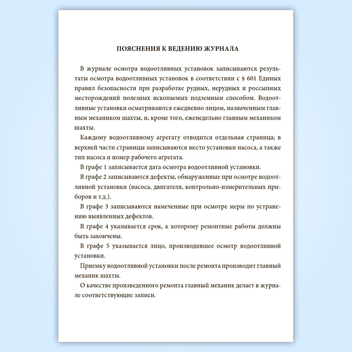 Журнал осмотра водоотливных установок в Щёлково купить