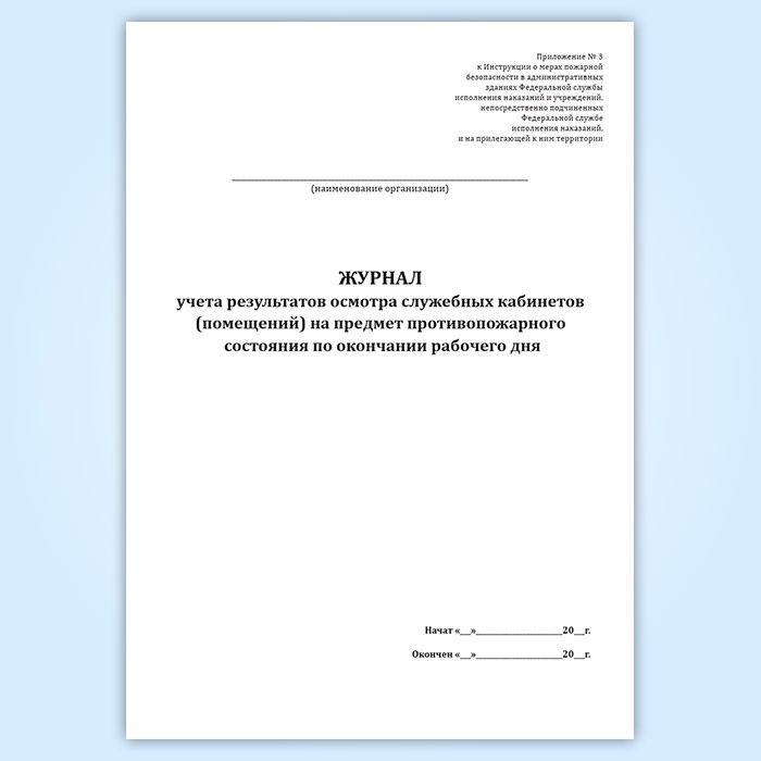 Журнал учета результатов осмотра служебных кабинетов (помещений) на предмет противопожарного состояния по окончании рабочего дня в Щёлково купить