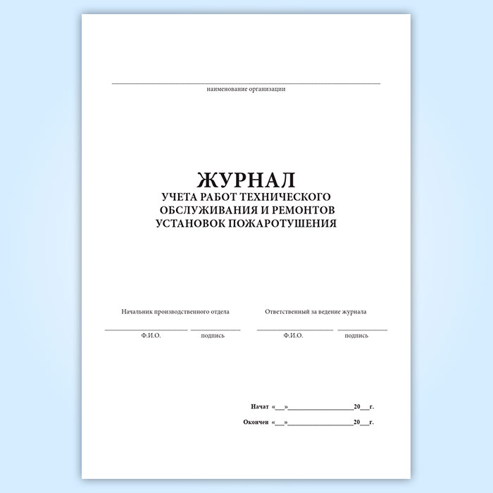 Журнал учета работ технического обслуживания и ремонтов установок пожаротушения в Щёлково купить