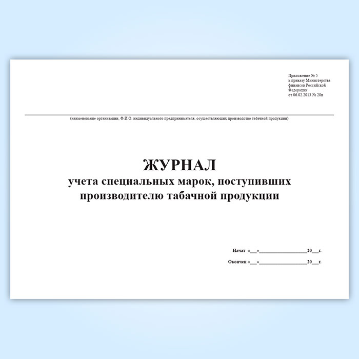 Журнал учета специальных марок, поступивших производителю табачной продукции в Щёлково купить
