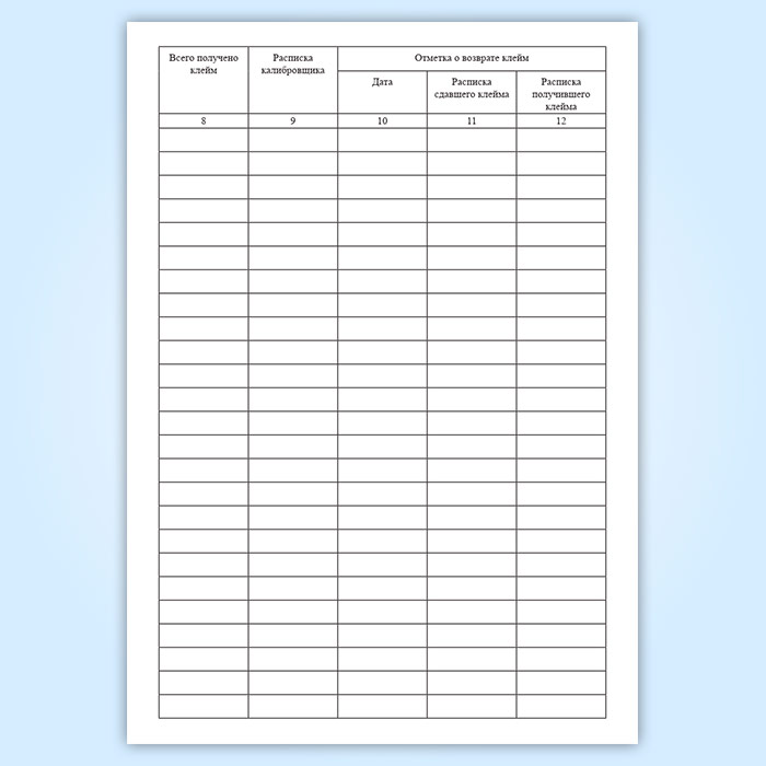 Журнал выдачи и получения калибровочных клейм в Щёлково купить