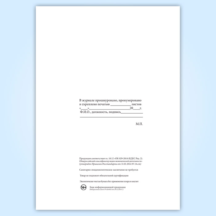Вы получаете печатную продукцию прошнурованной и c местом для вашей печати в соответствии с действующими нормативными документами: