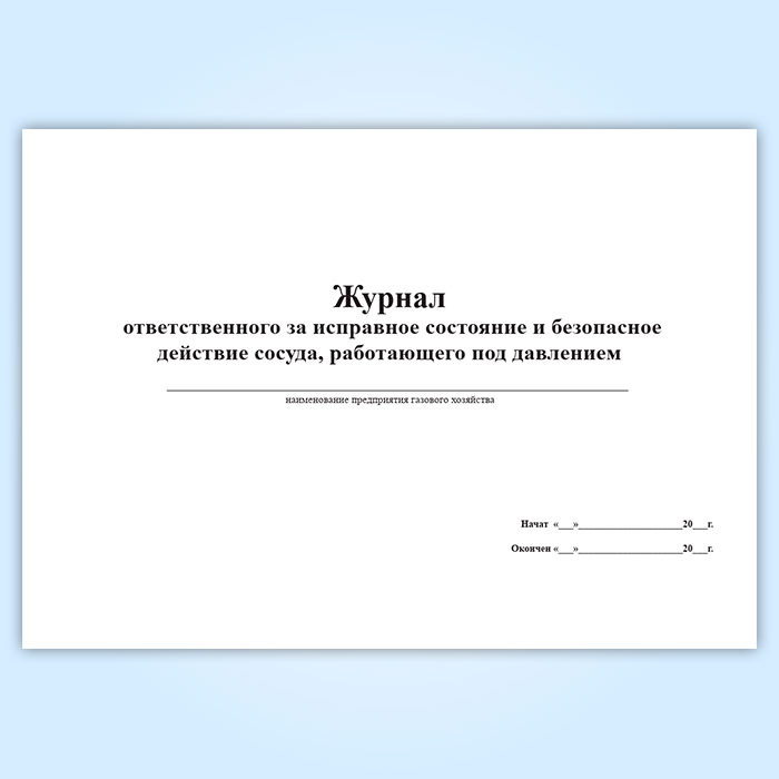 Журнал ответственного за исправное состояние и безопасное действие сосуда, работающего под давлением в Щёлково купить