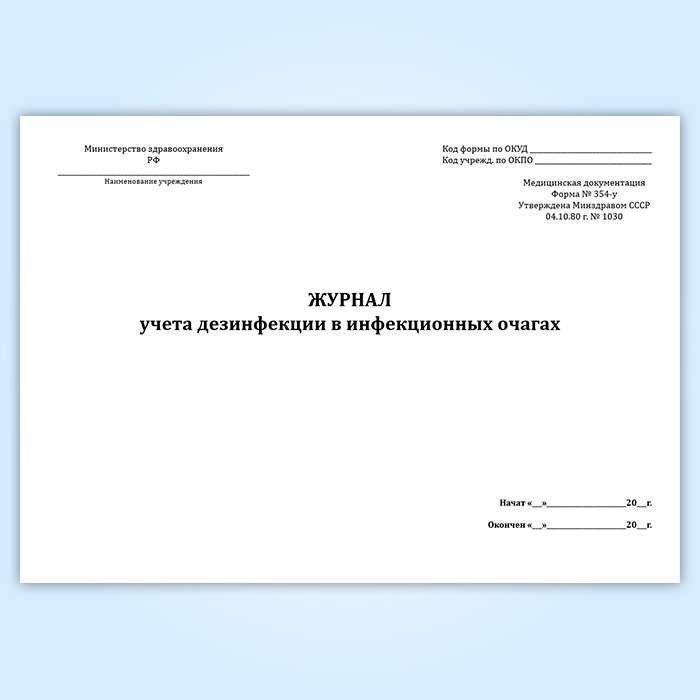 Журнал учета дезинфекции в инфекционных очагах (форма 354/у) в Щёлково купить