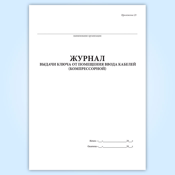 Журнал выдачи ключа от помещения ввода кабелей (компрессорной) в Щёлково купить