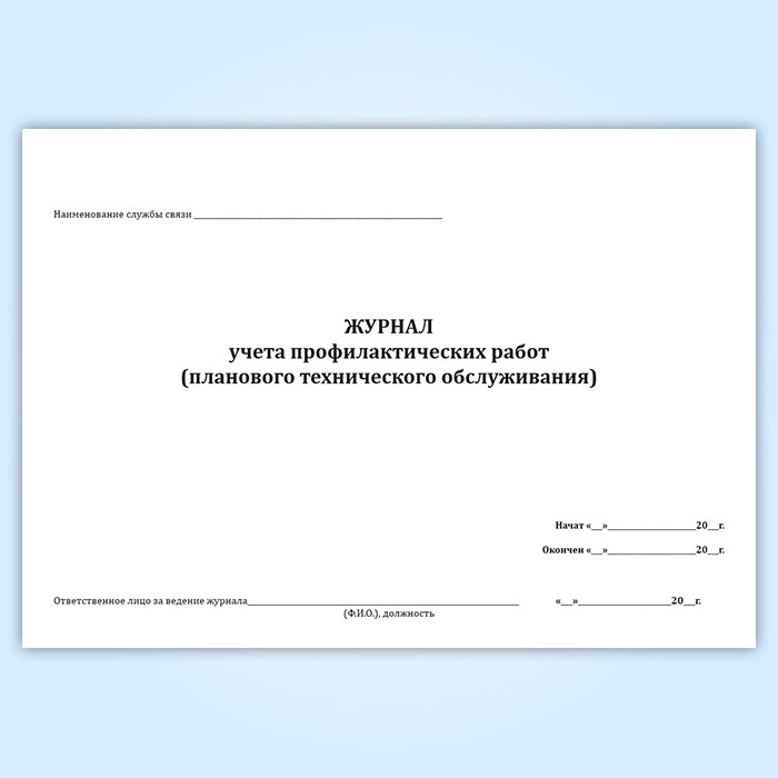 Журнал учета профилактических работ (планового технического обслуживания) в Щёлково купить