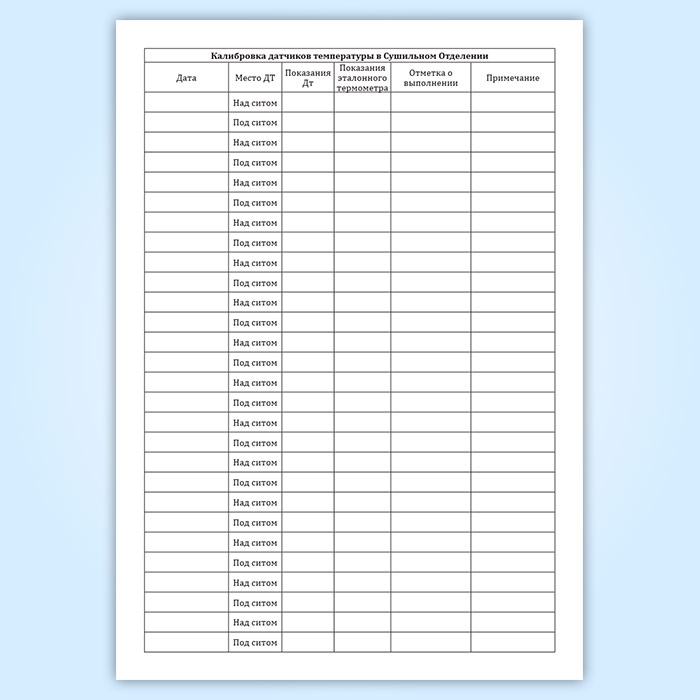 Журнал калибровки датчиков температуры в сушильном отделении в Щёлково купить