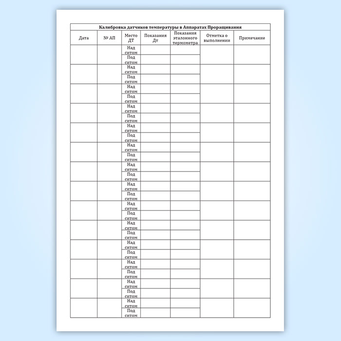 Журнал калибровки датчиков температуры в аппаратах проращивания в Щёлково купить