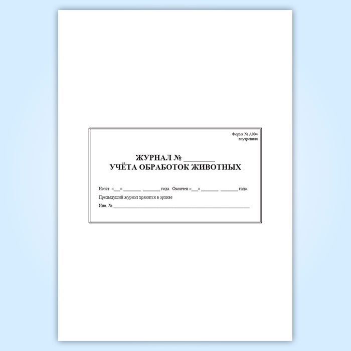 Журнал обработки животных (форма А 004) в Щёлково купить