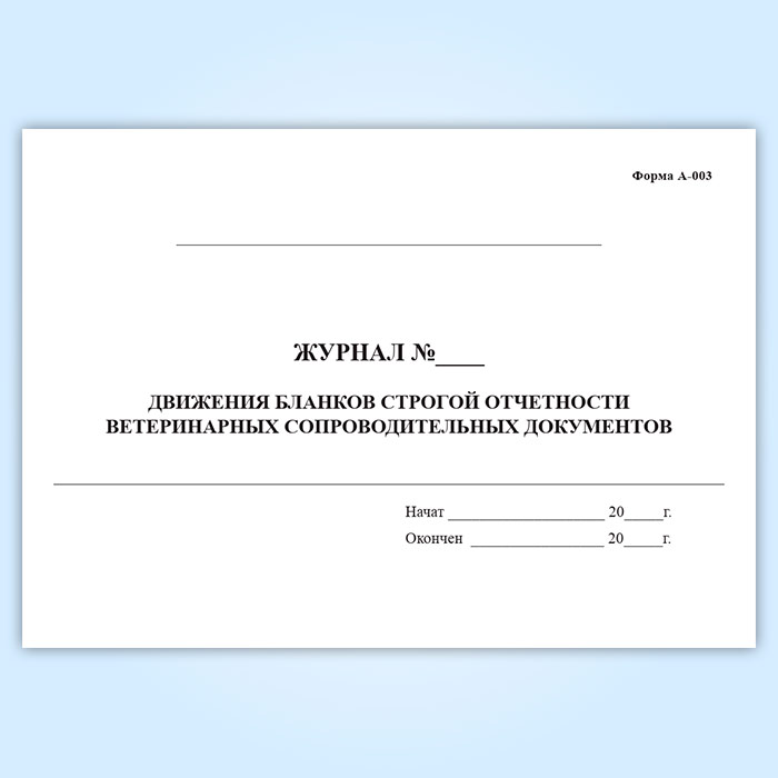 Журнал движения бланков строгой отчетности ветеринарных сопроводительных документов (форма А-003) в Щёлково купить