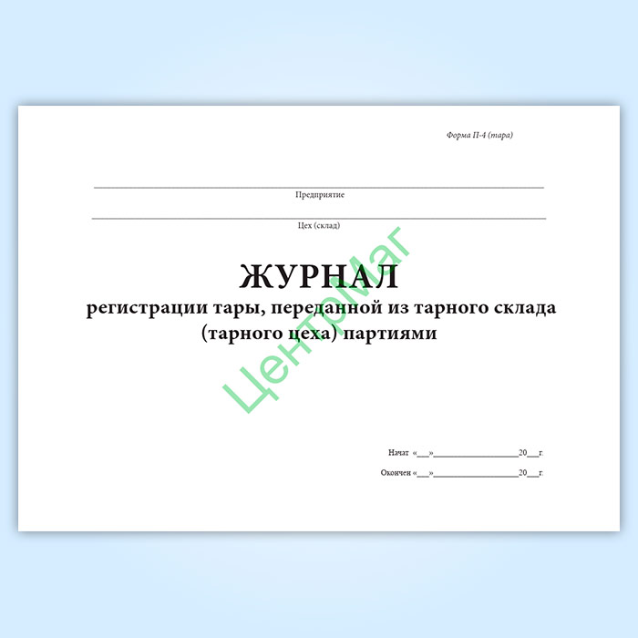 Журнал регистрации тары, переданной из тарного склада (тарного цеха) партиями (форма № П-4 тара) в Щёлково купить