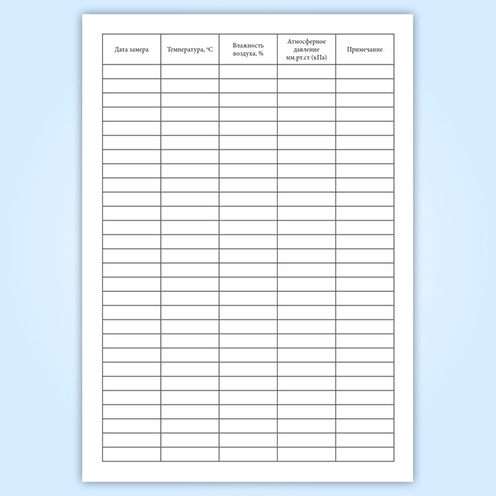 Журнал регистрации температуры, влажности, атмосферного давления в Щёлково купить