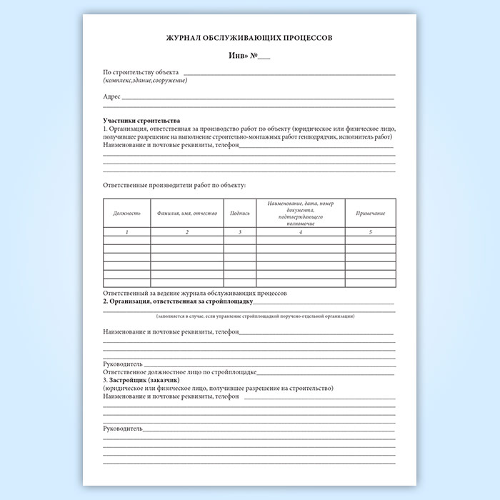 Журнал обслуживающих процессов по объекту в Щёлково купить