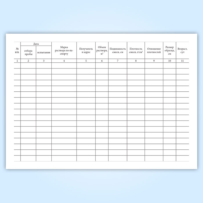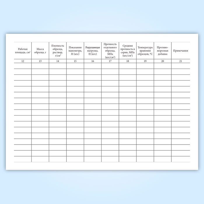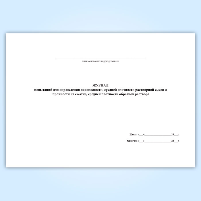 Журнал испытаний для определения подвижности, средней плотности растворной смеси и прочности на сжатие, средней плотности образцов раствора в Щёлково купить