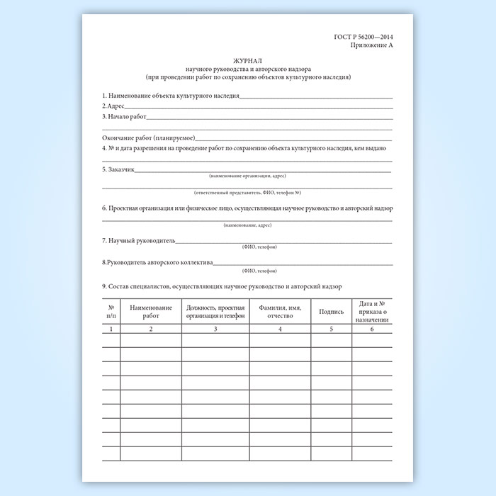 Журнал научного руководства и авторского надзора при проведении работ по сохранению объектов культурного наследия в Щёлково купить