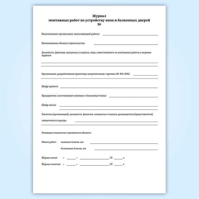 Журнал монтажных работ по устройству окон и балконных дверей в Щёлково купить