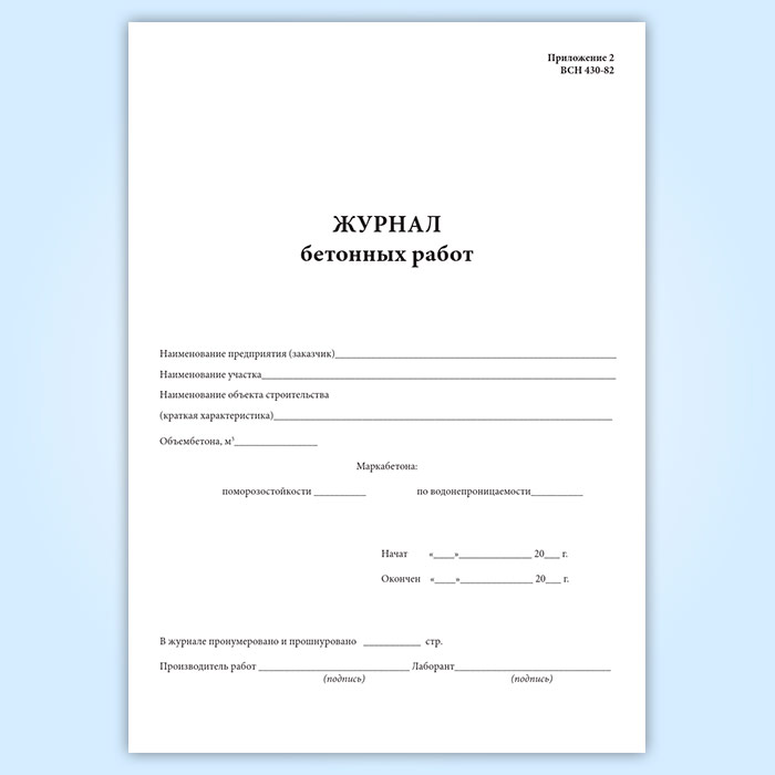 Журнал бетонных работ (ВСН 430-82) в Щёлково купить