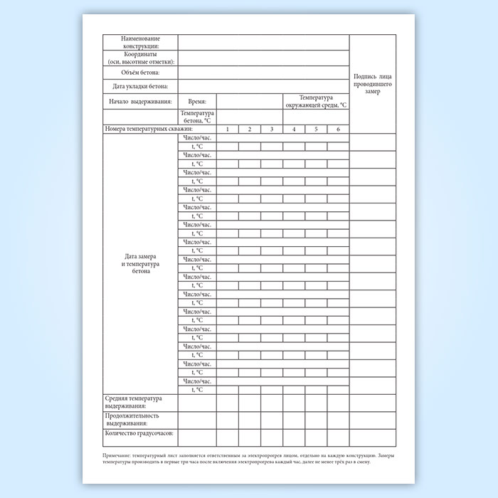 Журнал регистрации температуры бетона в монолитных конструкциях в Щёлково купить
