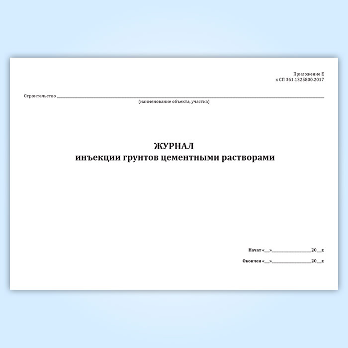 Журнал инъекции грунтов цементными растворами (СП 361.1325800.2017) в Щёлково купить