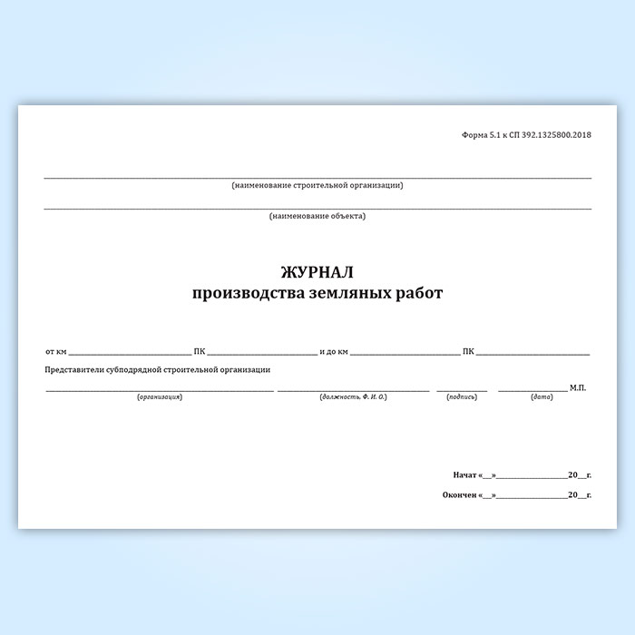Журнал производства земляных работ (форма 5.1) в Щёлково купить