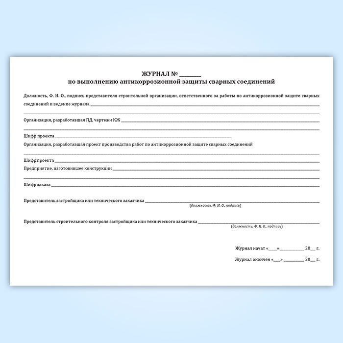 Журнал по выполнению антикоррозионной защиты сварных соединений (форма 12.3) в Щёлково купить