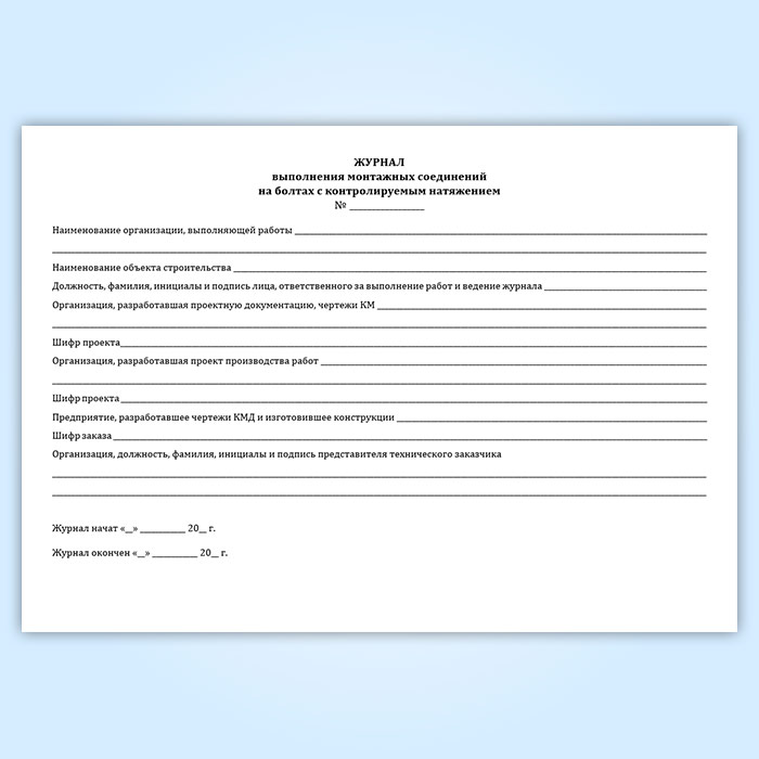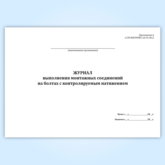 Журнал выполнения монтажных соединений на болтах с контролируемым натяжением (СТО НОСТРОЙ 2.10.76-2012) в Щёлково купить