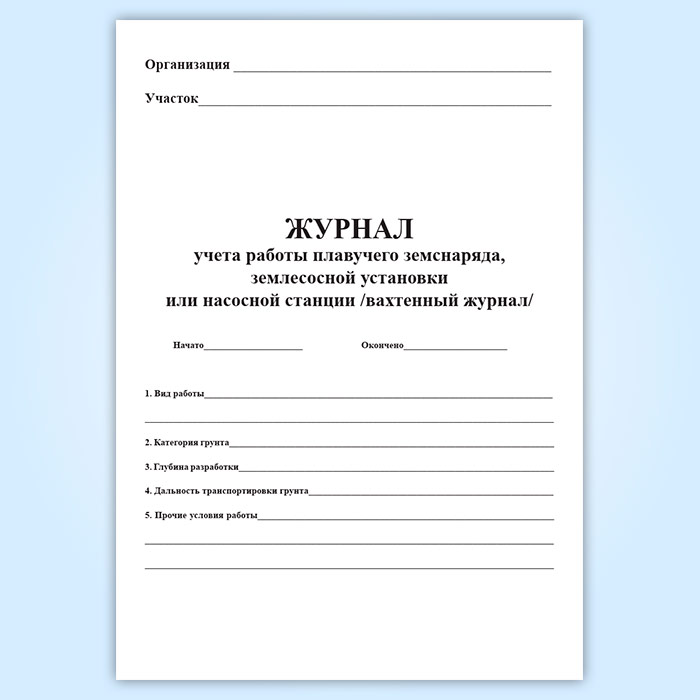 Журнал учета работы плавучего земснаряда, землесосной установки или насосной станции (вахтенный журнал) (форма ПД-3) в Щёлково купить