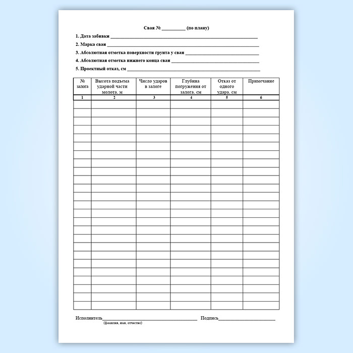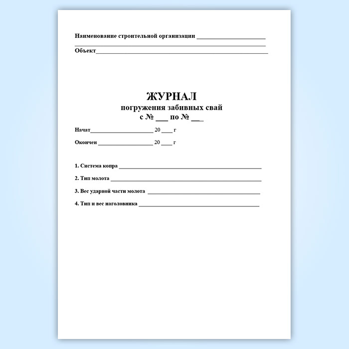 Журнал погружения забивных свай в Щёлково купить