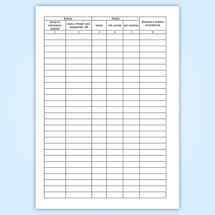 Журнал монтажа кабельных муфт напряжением до 1000 В в Щёлково купить