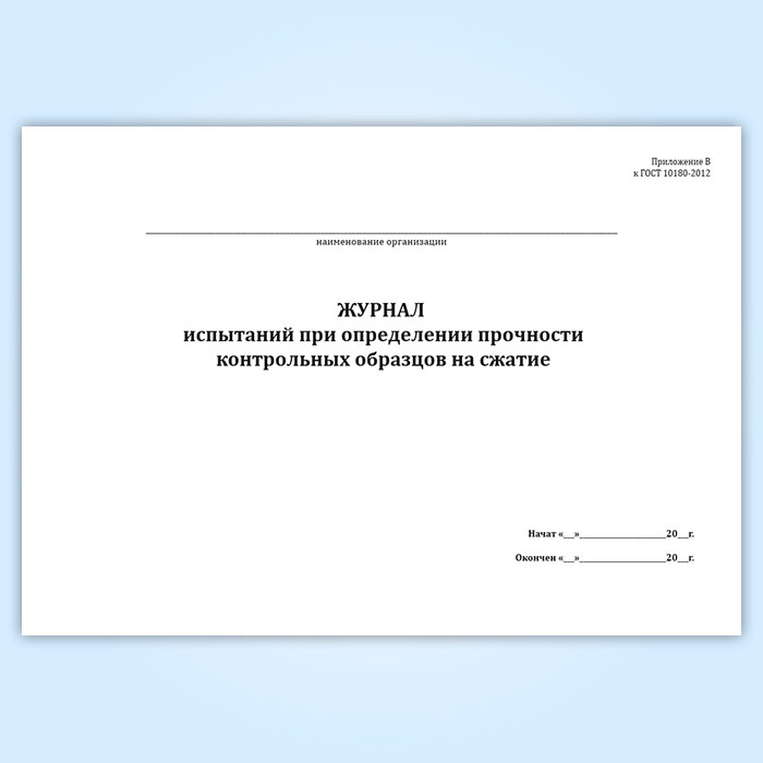 Журнал испытаний при определении прочности контрольных образцов на сжатие в Щёлково купить