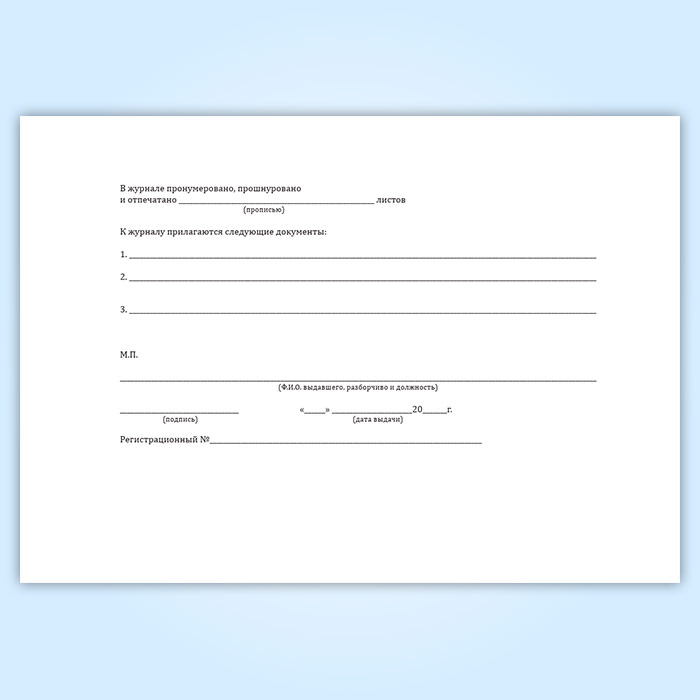 Вы получаете печатную продукцию прошнурованной и c местом для вашей печати в соответствии с действующими нормативными документами: