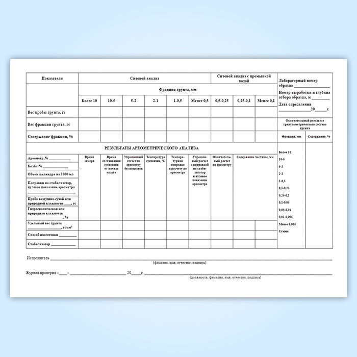 Журнал лабораторного определения гранулометрического (зернового) состава грунта в Щёлково купить