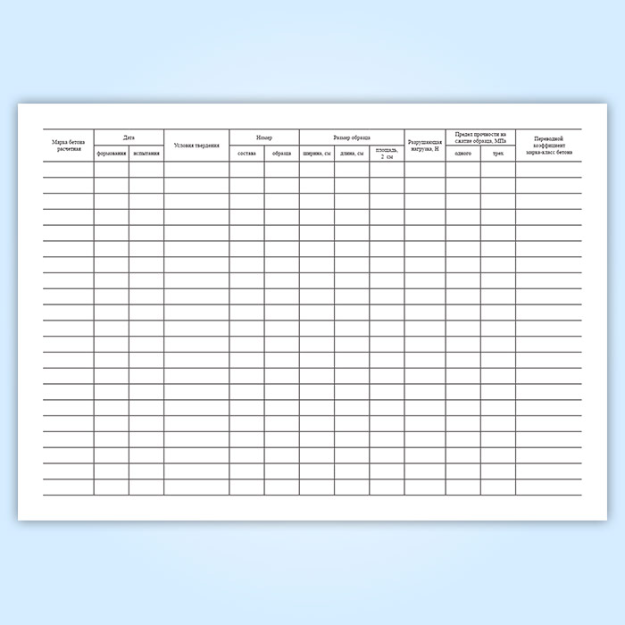 Журнал результатов по определению прочности бетона эталонным молотком Кашкарова в Щёлково купить