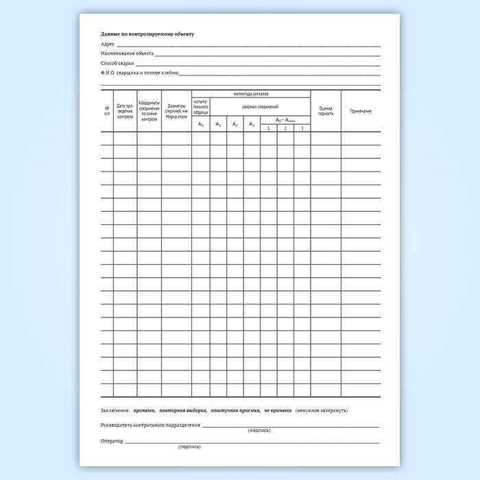 Журнал (протокол) ультразвукового контроля сварных стыковых соединений стержней арматуры в Щёлково купить