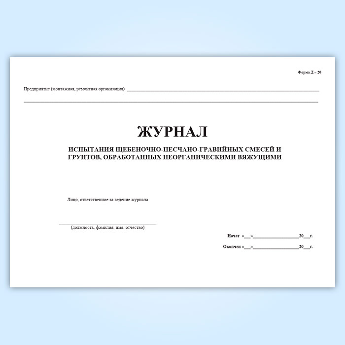 Журнал испытания щебеночно-песчано-гравийных смесей и грунтов, обработанных неорганическими вяжущими в Щёлково купить