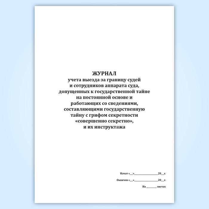 Журнал учета выезда за границу судей и сотрудников аппарата суда, допущенных к государственной тайне на постоянной основе и работающих со сведениями, составляющими государственную тайну с грифом секретности «совершенно секретно», и их инструктажа в Щёлково купить