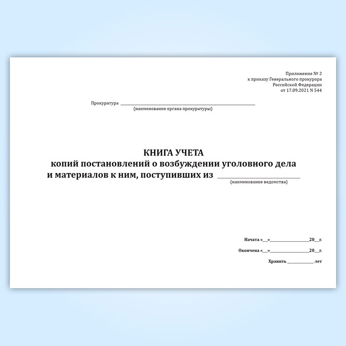 Книга учета копий постановлений о возбуждении уголовного дела и материалов к ним в Щёлково купить