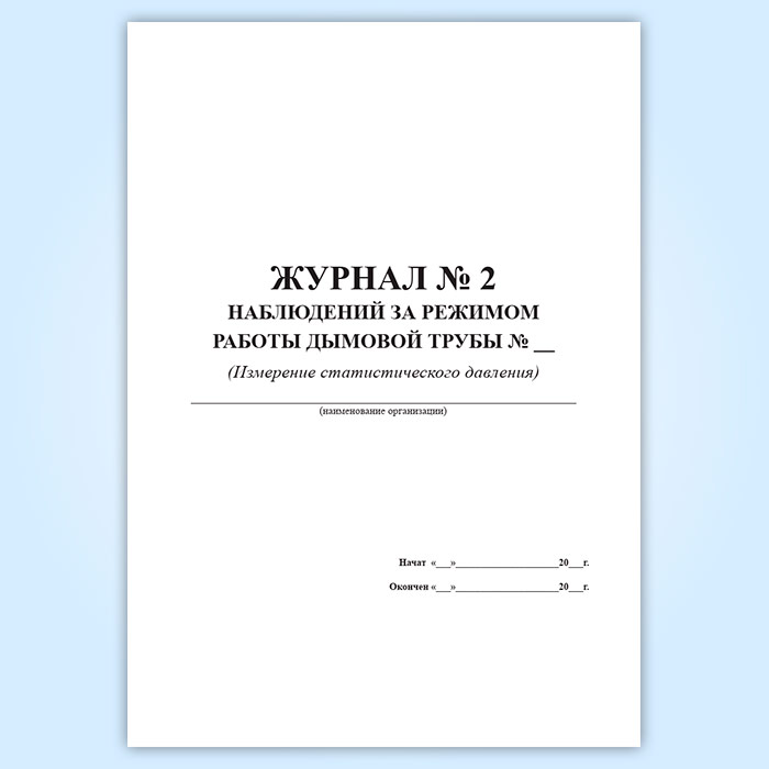 Журнал № 2 наблюдений за режимом работы дымовой трубы (Измерение статистического давления) в Щёлково купить