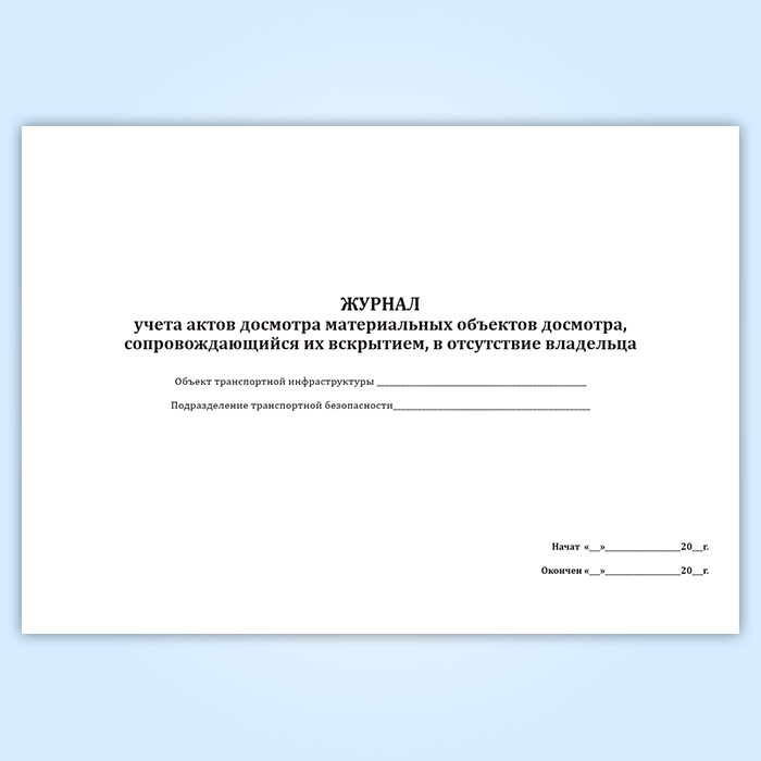 Журнал учета актов досмотра материальных объектов досмотра, сопровождающийся их вскрытием, в отсутствие владельца в Щёлково купить