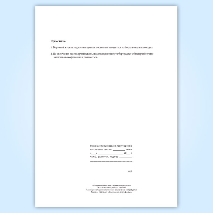 Бортовой журнал радиосвязи воздушного судна авиапредприятия в Щёлково купить