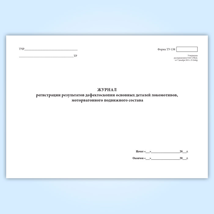 Журнал регистрации результатов дефектоскопии основных деталей локомотивов, моторвагонного подвижного состава (форма ТУ-138) в Щёлково купить