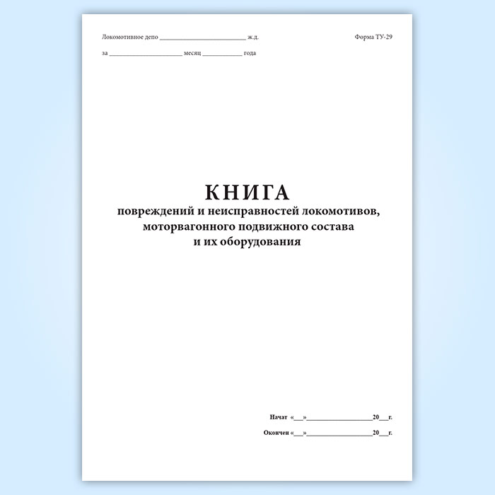 Книга повреждений и неисправностей локомотивов, моторвагонного подвижного состава и их оборудования (форма ТУ-29) в Щёлково купить