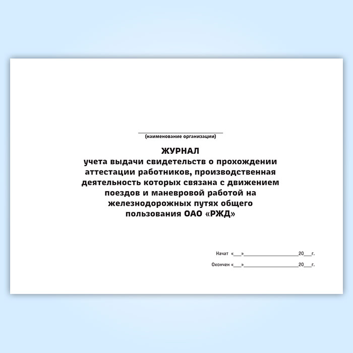 Журнал учета выдачи свидетельств о прохождении аттестации работников, производственная деятельность которых связана с движением поездов и маневровой работой на железнодорожных путях общего пользования ОАО «РЖД» в Щёлково купить