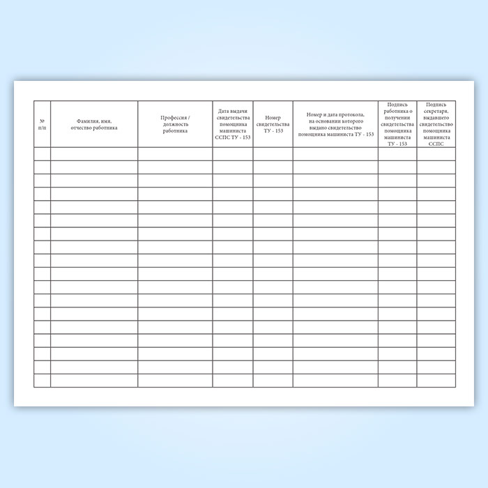 Журнал выдачи и регистрации удостоверений помощника машиниста ССПС (форма ТУ-153) в Щёлково купить